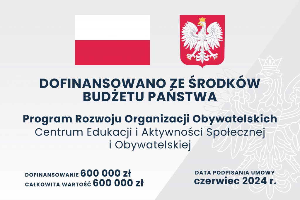Zadanie jest sfinansowane ze środków Narodowego Instytutu Wolności – Centrum Rozwoju Społeczeństwa Obywatelskiego w ramach Rządowego Programu Rozwoju Organizacji Obywatelskich